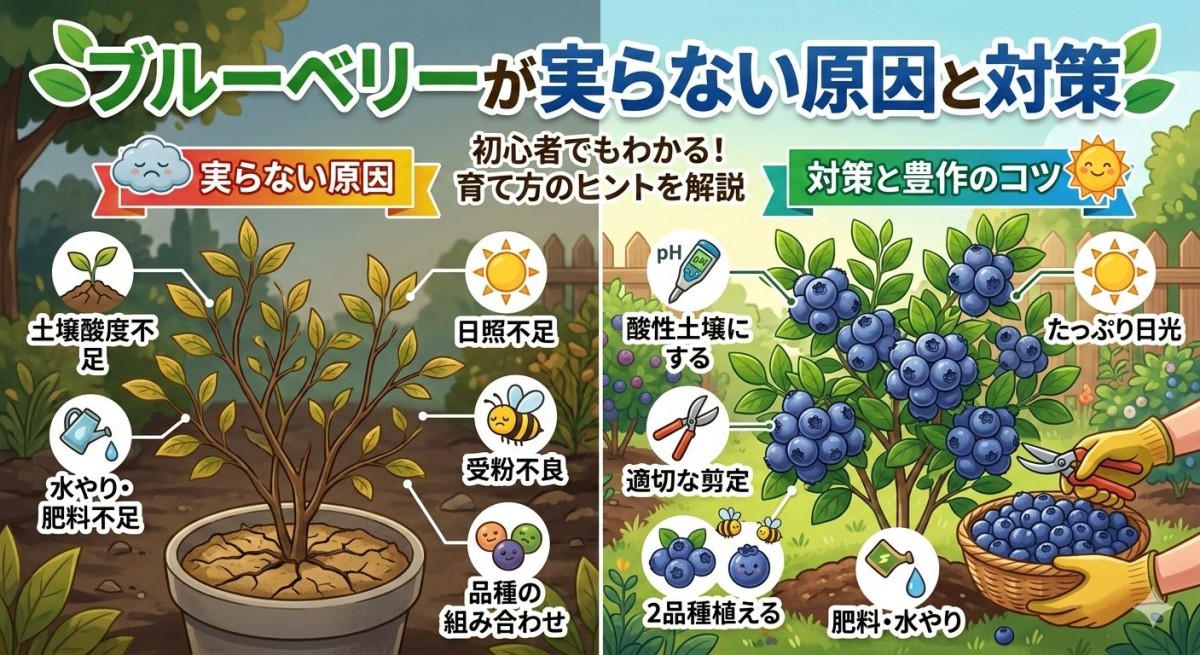ブルーベリーが実らない主な原因と対策を分かりやすく解説します。